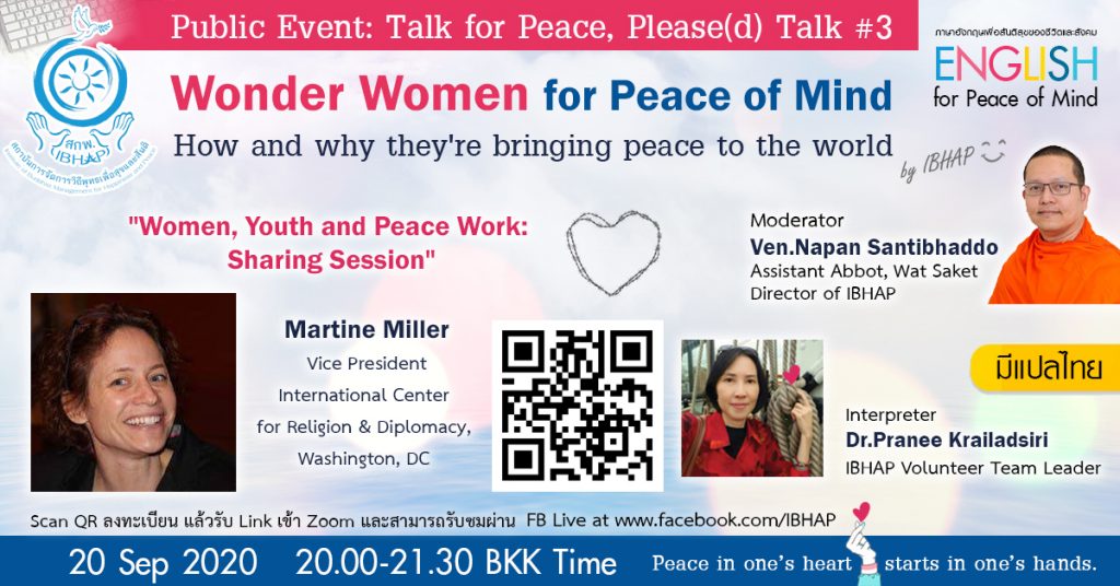 ให้มันเริ่มที่รุ่นเรา ^__^ ขอเชิญแลกเปลี่ยนเรียนรู้ร่วมขับเคลื่อนพลังคนรุ่นใหม่ และเสริมพลังสตรี พร้อมเชื่อมโลกด้วยภาษาอังกฤษเพื่อสันติสุขของชีวิตสังคม กับ “English for Peace of Mind” by IBHAP